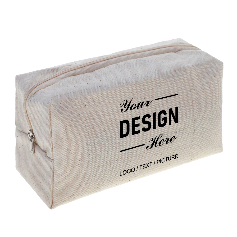 Aspire Cotton Custom Makeup Bag with Logo, Cuboid Shape 7 x 4 x 3 Inches Travel Toiletry Bag