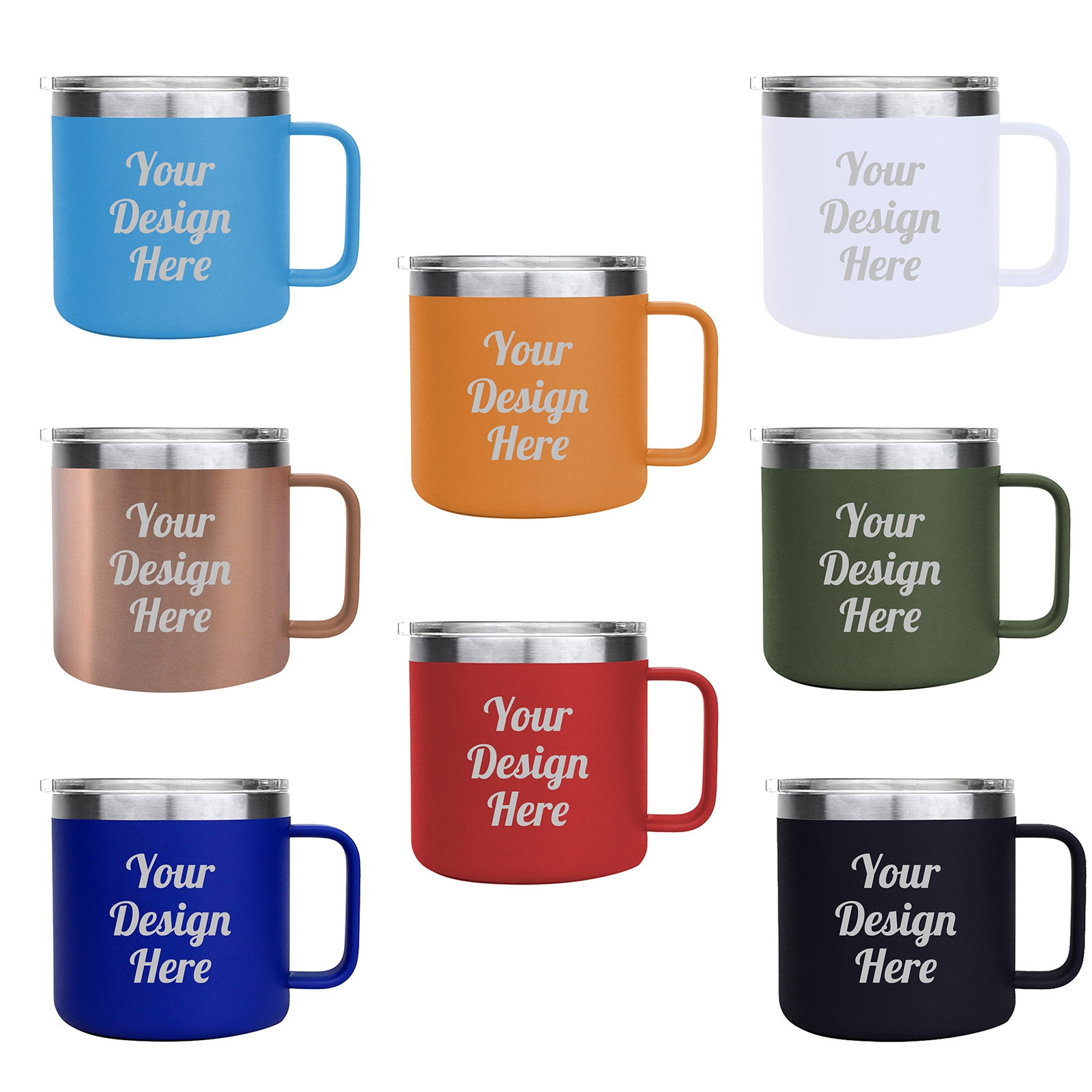 Muka Custom 14 Ounce Stainless Steel Coffee Mug, Insulated Tumbler with Handle, Laser Engraved