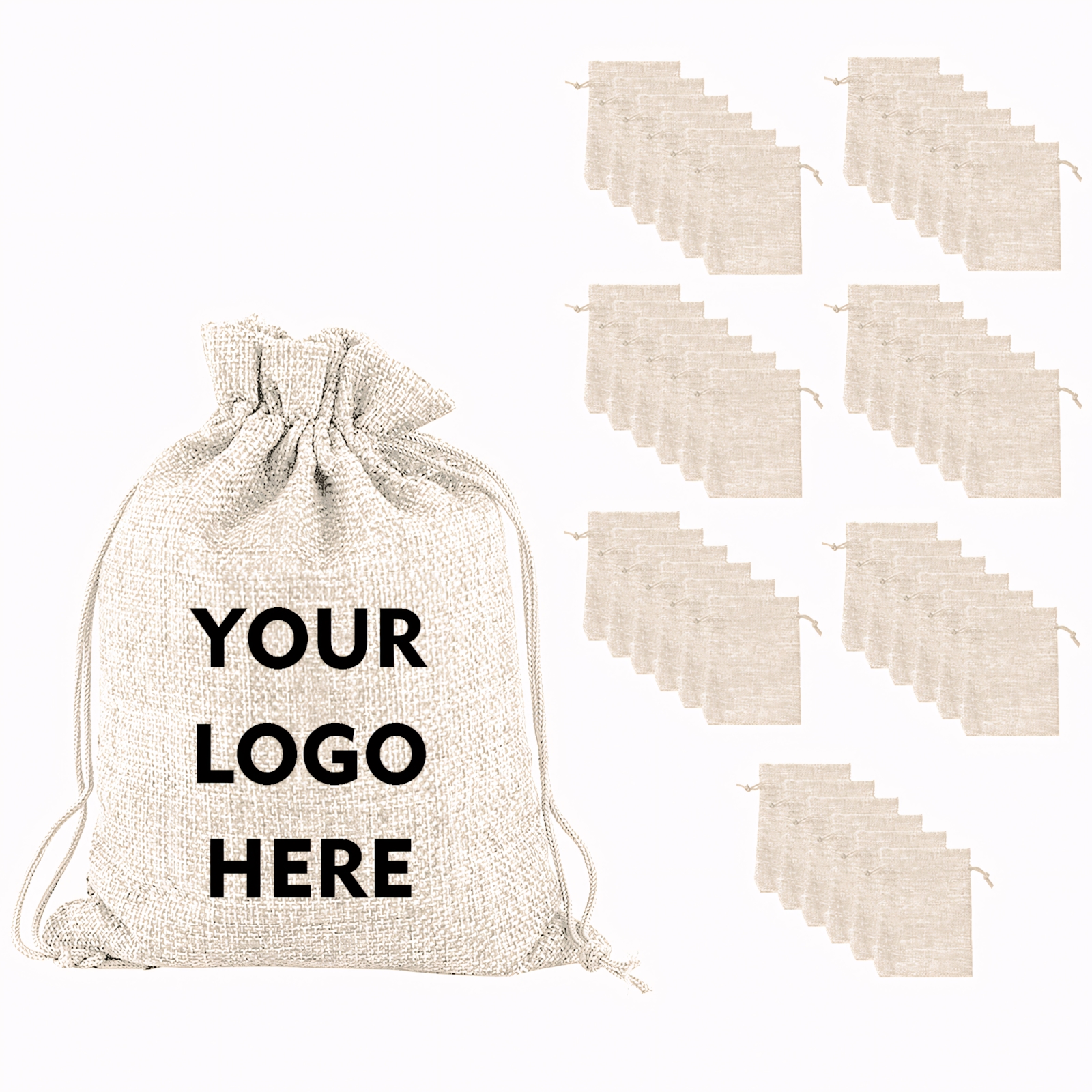 TOPTIE Custom 50 PCS Burlap Gift Wrap Bags with Logo, Print Drawstring Jewelry Pouches Party Favor Bags