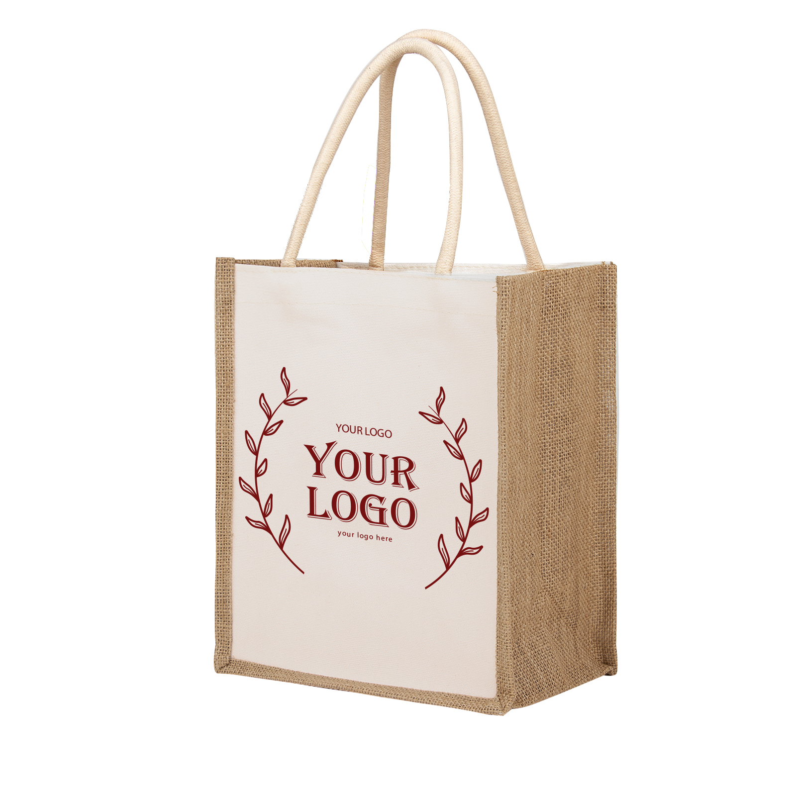 Custom your name, logo, initial, artwork, slogan, greeting, date, number, saying, cartoon on it|Canvas cotton front & back and natural burlap sides, with sturdy rope handles and reinforced outer canvas piping|Small 8.6 L x 6.3 H x 5.1 W inches (22 x 16 x 13cm). All lengths are including the cream piping. Please allow 0.5-1cm error of the bag size because they are made and measured by hand|Logo will be printed by heat transfer on 1 side, imprint area within 6*3-1/8 inches (15*8cm); stable and durable to use, all color allowed in your design|Good to be bridesmaid proposal bag, beach tote bag, everyday handbag, teacher bag, these are very cute and practical in daily life, like shopping, wedding, celebrations, market stand, etc